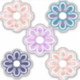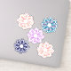 Cinco flores de colores sobre pegatinas de vinilo cortados por láser