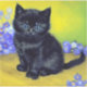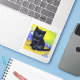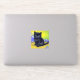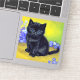 ¡pegatina con un gato negro al estilo de Vincent van Gogh! Este querido ojo azul se sienta adorablemente con flores moradas contra una pared verde y una mesa amarilla. ¡Un regalo maravilloso para los amantes del gato y los coleccionistas holandeses de arte!