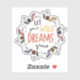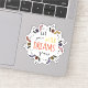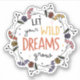 Un pegatina portátil con un marco floral y un texto, "Que tus sueños salvajes crezcan".