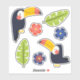 Pegatinas tropicales de vinilo de dos pájaros toscanos y dos hojas de monstera y tres flores tropicales en rojo y azul. Un conjunto encantador de siete pegatinas con diseños divertidos y coloridos.
