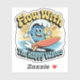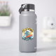 Flow With The Happy Waves Waterproof Sticker adds a splash of joy to your surfaces! This high-quality vinyl sticker features a cartoon wave character surfing happily with a sunny backdrop in retro colors.