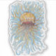 Una medusa llamativa se representa con tendriles coloridos y fluidos. Las intrincadas líneas de blues y naranjas vibrantes dan un sentido de movimiento y gracia. Esta imagen capta la delicada belleza de la vida marina con un toque artístico.