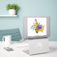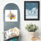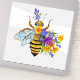 Artistically drawn, flower, honey bee with contrasting colors, yellow, bright, blooming california poppy and blue wild plants on white background.