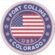 Fort Collins Colorado, City of Fort Collins pegatina con bandera de los Estados Unidos, forma redondeada