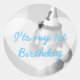 Pegatina fotográfico de primer cumpleaños personalizado azul para niños.