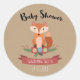Este rústico pegatina de ducha de bebé de bosque cuenta con un lindo zorro y una disposición floral sobre un fondo de papel kraft escaneado. El diseño también incluye un tipo de letra con estilo de pincel en la parte superior y un cartel marrón. También están disponibles en la tienda las mismas invitaciones de diseño, tarjeta de agradecimiento, etiqueta y caja de favores. Me gusta este tema y estilo personalmente y ha sido popular en la tienda. Quería crear una colección de zorros de recién nacido de ducha para dar a los clientes más opciones. Este lindo pegatina rústico de zorro de bosque de zorro de bebé, favorita a los bebés, está listo para ser personalizado.