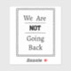 "NO Volvemos" es una frase familiar que se oye en estos días pero que se refiere a muchas cosas que ocurren en nuestras vidas. Un recordatorio agradable y amable. Ponte en cualquier superficie. Grabado negro sobre fondo blanco. Un regalo perfecto para un amigo o un ser querido.