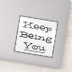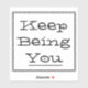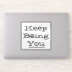 Mostrar la frase motivacional "Sigue siendo tú" en cualquier superficie plana como carpetas y laptops. Grabado negro y borde negro sobre fondo blanco.