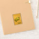 Una pimienta friggitello verde-amarilla, también conocida como pimienta de oro griega o, en los Estados Unidos, piperoncini cuando es encurtida, está decorada con motivos inspirados en diseños de antiguas ampanas griegas y se sienta en un fondo amarillo con una versión más pequeña del mismo patrón y una etiqueta de escritura en la esquina. Esta pimienta suave fue cultivada originalmente en Italia y se come en toda Europa y Estados Unidos.