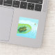 Escarcha atrapando insecto. Perro de caza de ranas. Durante su vida, una rana romperá miles de insectos con su lengua pegajosa y extensible. Rana verde sobre la almohadilla de lirio tratando de atrapar un escarabajo volador. Ilustracion de libros.