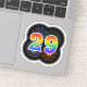 Este divertido y emocionante diseño pegatina presenta un colorido estallido de fuegos artificiales de celebración inspirado, junto con el número "29" que presenta un multicolor arcoiris como el espectro o el patrón de gradiente. Un pegatina divertido como este podría ser usado tal vez cuando se celebra el vigésimo noveno cumpleaños de alguien, o tal vez el vigésimo noveno aniversario de una pareja, o algún otro evento del 29. [~Z0000362]