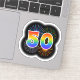 Este divertido y emocionante diseño pegatina presenta un colorido estallido de fuegos artificiales de celebración inspirado, junto con el número "50" que tiene un espectro multicolor inspirado en el arcoiris o un patrón de gradiente. Un pegatina como este podría ser usado para celebrar el cincuentenario de alguien, o tal vez el cincuentenario de una pareja, o algún otro evento del 50. [~Z0000362]