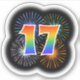 Este divertido y emocionante diseño pegatina presenta un patrón colorido inspirado en fuegos artificiales de celebración reventando, junto con el número "17" que tiene un espectro multicolor inspirado en el arcoiris o un patrón de gradiente. Un pegatina como este tal vez podría ser usado cuando se celebra el 17 cumpleaños de alguien, o tal vez el 17 aniversario de una pareja, o algún otro evento del 17. [~Z0000362]