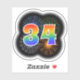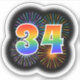 Este divertido y emocionante diseño pegatina presenta un patrón colorido inspirado en fuegos artificiales de celebración reventando, junto con el número "34" que presenta un espectro multicolor inspirado en el arcoiris o un patrón de gradiente. Un pegatina divertido como este puede ser divertido de usar cuando se celebra el 34° cumpleaños de alguien, o tal vez el 34° aniversario de una pareja, o algún otro evento del 34. [~Z0000362]