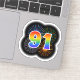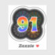 Este divertido y vibrante diseño pegatina presenta un patrón colorido inspirado en fuegos artificiales de celebración reventando, junto con el número "91" que presenta un multicolor como el espectro o el gradiente. Un pegatina emocionante como este puede ser divertido de usar cuando se celebra el noventa y primer cumpleaños de alguien, o tal vez el noventa primer aniversario del boda de una pareja, o algún otro evento del 91. [~Z0000362]