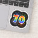 Este divertido y vibrante diseño pegatina presenta un colorido estallido de fuegos artificiales de celebración inspirado, junto con el número "70" que presenta un multicolor arcoiris como el espectro o el gradiente. Un pegatina divertido como este podría ser usado tal vez cuando se celebra el septuagésimo cumpleaños de alguien, o tal vez el septuagésimo aniversario de una pareja, o algún otro evento del 70. [~Z0000362]