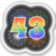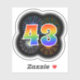 Este divertido y emocionante diseño pegatina presenta un patrón colorido inspirado en fuegos artificiales de celebración reventando, junto con el número "43" que presenta un multicolor arcoiris como espectro o gradiente. Un pegatina como este tal vez podría ser usado cuando se celebra el cuarenta y tercer cumpleaños de alguien, o tal vez el cuarenta y tercer aniversario de una pareja, o algún otro evento 43. [~Z0000362]