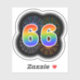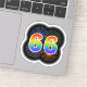 Este divertido y emocionante diseño pegatina presenta un colorido estallido de fuegos artificiales de celebración inspirado, junto con el número "66" que presenta un multicolor arco iris como el espectro o el patrón gradiente. Un pegatina divertido como este podría ser usado cuando se celebra el 66º cumpleaños de alguien, o tal vez el sesenta y sexto aniversario de una pareja, o algún otro acontecimiento 66º. [~Z0000362]