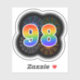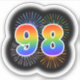 Este divertido y vibrante diseño pegatina presenta un patrón colorido inspirado en fuegos artificiales de celebración reventando, junto con el número "98" que tiene un arcoiris multicolor como el espectro o el patrón gradiente. Un pegatina divertido como este podría ser usado tal vez cuando se celebra el 98º cumpleaños de alguien, o tal vez el noventa y octavo aniversario de una pareja, o algún otro evento del 98º. [~Z0000362]