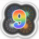 Este divertido y vibrante diseño pegatina presenta un patrón colorido inspirado en fuegos artificiales de celebración reventando, junto con el número "9" que tiene un arcoiris multicolor como el espectro o el patrón gradiente. Un pegatina como este puede ser divertido de usar cuando se celebra el noveno cumpleaños de alguien, o tal vez el noveno aniversario de una pareja, o algún otro acontecimiento noveno. [~Z0000362]