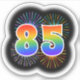 Este divertido y emocionante diseño pegatina presenta un patrón colorido inspirado en fuegos artificiales de celebración reventando, junto con el número "85" que tiene un espectro multicolor inspirado en el arcoiris o un patrón de gradiente. Un pegatina como este puede ser divertido de usar cuando se celebra el ochenta y quinto cumpleaños de alguien, o tal vez el ochenta y quinto aniversario del boda de una pareja, o algún otro evento del 85. [~Z0000362]