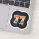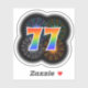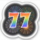 Este divertido y emocionante diseño pegatina presenta un colorido estallido de fuegos artificiales de celebración inspirado, junto con el número "77" que presenta un espectro multicolor inspirado en el arcoiris o un patrón de gradiente. Un pegatina tan emocionante como este podría ser usado tal vez cuando se celebra el 77 cumpleaños de alguien, o tal vez el setenta y siete años de boda de una pareja, o algún otro evento del 77. [~Z0000362]