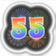 Este divertido y emocionante diseño pegatina presenta un patrón colorido inspirado en fuegos artificiales de celebración reventando, junto con el número "55" que presenta un multicolor como el espectro o el gradiente. Un pegatina tan emocionante como este podría ser usado cuando se celebra el 55º cumpleaños de alguien, o tal vez el cincuenta quinto aniversario de una pareja, o algún otro acontecimiento 55º. [~Z0000362]