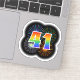 Este divertido y vibrante diseño pegatina presenta un patrón colorido inspirado en fuegos artificiales de celebración reventando, junto con el número "41" que tiene un arcoiris multicolor como el espectro o el patrón gradiente. Un pegatina tan emocionante como este podría ser usado tal vez cuando se celebra el 41° cumpleaños de alguien, o tal vez el 41° aniversario de una pareja, o algún otro acontecimiento 41. [~Z0000362]