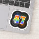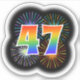 Este divertido y vibrante diseño pegatina presenta un patrón colorido inspirado en fuegos artificiales de celebración reventando, junto con el número "47" que presenta un multicolor como el espectro o el gradiente. Un pegatina como este tal vez podría ser usado cuando se celebra el 47 cumpleaños de alguien, o tal vez el 47 aniversario de una pareja, o algún otro evento del 47. [~Z0000362]