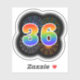 Este divertido y emocionante diseño pegatina presenta un colorido estallido de fuegos artificiales de celebración inspirado, junto con el número "36" que tiene un espectro multicolor inspirado en el arcoiris o un patrón de gradiente. Un emocionante pegatina como este podría ser usado cuando se celebra el 36 cumpleaños de alguien, o tal vez el 36 aniversario de una pareja, o algún otro evento del 36. [~Z0000362]