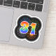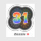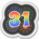 Este divertido y vibrante diseño pegatina presenta un patrón colorido inspirado en fuegos artificiales de celebración reventando, junto con el número "31" que tiene un espectro multicolor inspirado en el arcoiris o un patrón gradiente. Un pegatina divertido como este puede ser divertido de usar cuando se celebra el 31° cumpleaños de alguien, o tal vez el 30 primer aniversario de una pareja, o algún otro evento del 31. [~Z0000362]