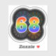 Este divertido y emocionante diseño pegatina presenta un patrón colorido inspirado en fuegos artificiales de celebración reventando, junto con el número "68" que presenta un espectro multicolor inspirado en el arcoiris o un patrón de gradiente. Un pegatina tan emocionante como este podría ser usado tal vez cuando se celebra el 68º cumpleaños de alguien, o tal vez el sesenta y octavo aniversario de una pareja, o algún otro acontecimiento 68º. [~Z0000362]