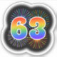 Este divertido y vibrante diseño pegatina presenta un patrón colorido inspirado en fuegos artificiales de celebración reventados, junto con el número "63" que presenta un multicolor como el espectro o el gradiente. Un pegatina divertido como este puede ser divertido de usar cuando se celebra el sexagésimo tercer cumpleaños de alguien, o tal vez el sesenta y tercer aniversario de una pareja, o algún otro evento del 63. [~Z0000362]