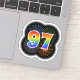 Este divertido y emocionante diseño pegatina presenta un patrón colorido inspirado en fuegos artificiales de celebración reventando, junto con el número "97" que presenta un espectro multicolor inspirado en el arcoiris o un patrón de gradiente. Un pegatina divertido como este podría ser usado cuando se celebra el 97º cumpleaños de alguien, o tal vez el noventa y sétimo aniversario de una pareja, o algún otro evento del 97º. [~Z0000362]