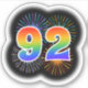 Este divertido y vibrante diseño pegatina presenta un colorido estallido de fuegos artificiales de celebración inspirado, junto con el número "92" que tiene un multicolor arcoiris como el espectro o el patrón gradiente. Un pegatina tan emocionante como este podría ser usado cuando se celebra el 92 cumpleaños de alguien, o tal vez el noventa segundo aniversario de una pareja, o algún otro acontecimiento 92. [~Z0000362]
