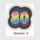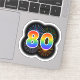 Este divertido y vibrante diseño pegatina presenta un patrón colorido inspirado en fuegos artificiales de celebración reventando, junto con el número "80" que presenta un multicolor arcoiris como el espectro o el gradiente. Un pegatina como este podría ser usado cuando se celebra el 80º cumpleaños de alguien, o tal vez el 80º aniversario de una pareja, o algún otro evento del 80º. [~Z0000362]
