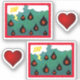 Thunderflowers comic book style pop art and red heart set. colorful fun whimsical cartoon with puffy white clouds and yellow lightning bolt, black raindrops and red flowers inside them fall to the ground on a green slate chalkboard sky. Two bonus red hearts.