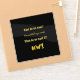 A witty, minimalist parody of a protest chant that humorously nods to a vintage television game show, using bold yellow text on a black background to deliver a punchline with perfect comedic timing.