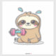 Pegatina Funny Chibi Sloth Workout Cute Kawaii Gym Cartoon