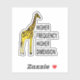 Gracioso Pegatina Giraffe Pun diseñado por Nisha Prabhu. Una jirafa graciosa y agradable con palabras de juego de palabras ''Mayor frecuencia. Dimensión más alta''' Añade un toque de fantasía a tus pertenencias con este gracioso Pegatina de Giraffe Pun! Este pegatina te hará sonreír a la cara y a los que te rodean con su encantador diseño de juego de palabras con jirafa. Perfecto para decorar tu laptop, botella de agua, portátil o cualquier otra superficie, este pegatina es una manera divertida y peculiar de mostrar tu sentido del humor. Hecho con materiales duraderos, es fácil de aplicar y durará en todas sus aventuras. ¡Así que sigue con algunas risas y estilo con este pegatina que debe tener de Cutehomegifts Zazzle!