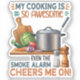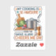 Trae humor al corazón de tu casa con este pegatina lúdico que muestra la frase: "Mi cocina es tan asombrosa, ¡incluso la alarma de humo me anima!" Rodeada de coloridos ilustraciones de macetas, verduras frescas, una tabla de cortar y especias de la cocina, esta original obra de arte celebra con una sonrisa los pergaminos de la cocina. Perfecto para cocineros caseros, amantes de la comida y todo aquel que aprecie un buen chiste culinario en una cocina cálida y acogedora.