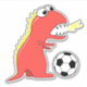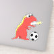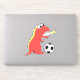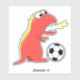 Pegatina de fútbol gracioso con un dinosaurio personalizado jugando fútbol de fondo negro (preparándose para patear la pelota). Este gracioso dinosaurio atraerá a alguien que ama los dinosaurios, el fútbol y los ilustraciones personalizados divertidos.