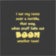 El texto amarillo transmite un mensaje humorístico relacionado con el taco sobre un fondo negro sólido. El énfasis en "BOOM" pone de relieve la ingeniosa idea de crear un taco extra cuando los rellenos se derraman.