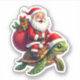 Pegatina Funny Turtle Christmas Santa Riding Sea Turtle Xma