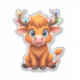 Pegatina Funny Xmas Cow Lights Boys Girls Cute Highland Cow