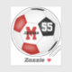 Este equipo colorea el pegatina de fútbol para niños o chicas y presenta la imagen realista de una pelota de fútbol con paneles rojos, negros y blancos - personalizar el nombre del jugador, número de monograma y camiseta - de katz_d_zynes