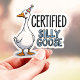 Esta divertida pegatina presenta un ganso tonto que lleva un sombrero de fiesta con la frase "Ganso Tonto Certificado". ¡Perfecto para cualquiera que abrace su lado tonto! Esta pegatina de vinilo duradera es ideal para portátiles, botellas de agua, fundas de teléfono y más. Agrega un toque de fantasía y risa a tus pertenencias.