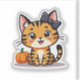 Sticker de gatito Bengala juguetón al estilo kawaii de Halloween con calabazas y tonos festivos, ideal para amantes de los gatos y manualidades de temporada.