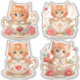 Mejora tus manualidades, regalos y papelería con este conjunto de cuatro pegatinas que presentan un encantador gatito rojo sentado en una lujosa taza de té adornada con intrincados detalles dorados y rodeada de suaves acentos florales. Perfectas para los amantes de los gatos y los fanáticos de los diseños caprichosos y elegantes, estas pegatinas capturan un ambiente romántico y encantador. Ideales para scrapbooking, envolver regalos o decorar cuadernos y cartas, añaden un toque de magia y sofisticación a cualquier proyecto. Estas pegatinas de alta calidad son perfectas para ocasiones festivas, cumpleaños o simplemente para difundir alegría.