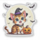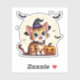 Adorable gatito kawaii de Bengala en estilo chibi con tema de Halloween, con calabazas y encanto espeluznante. Perfecto para stickers y regalos de temporada.